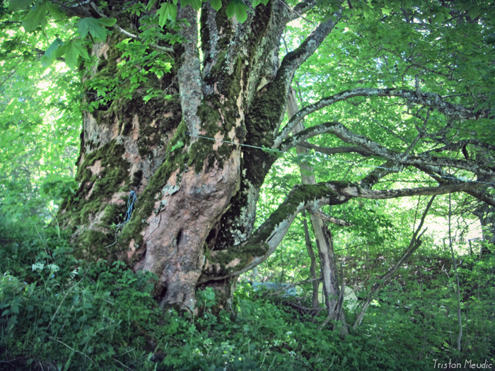 Le Salève est une vraie pépinière d’arbres remarquables. Il est ici assez facile de tomber, au détour d’un sentier, sur un ligneux hors du commun. Difficile pourtant, pour le randonneur de passage, de déceler le caractère exceptionnel de l’érable situé une trentaine de mètres en contrebas du chemin de la Thuile, non loin des bâtiments.